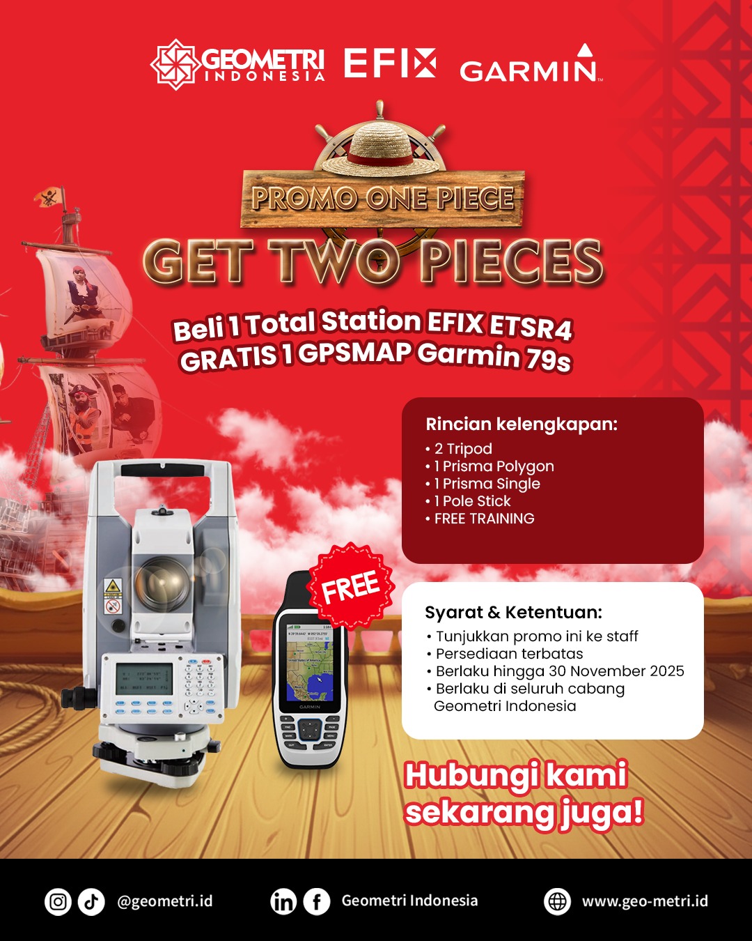 Bajak promo Geometri! Beli Total Station EFIX ETSR4 langsung gratis GPS Garmin 79s. Stok terbatas hingga 30 November 2025. #BajakLautGeometriBAJAK PRO...